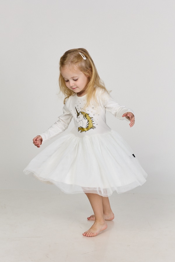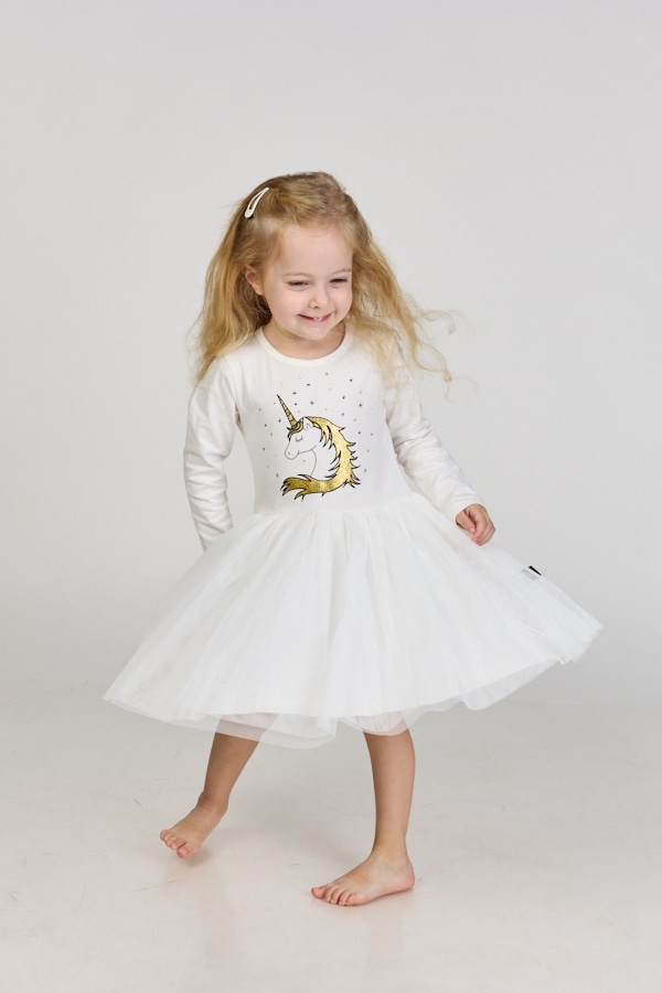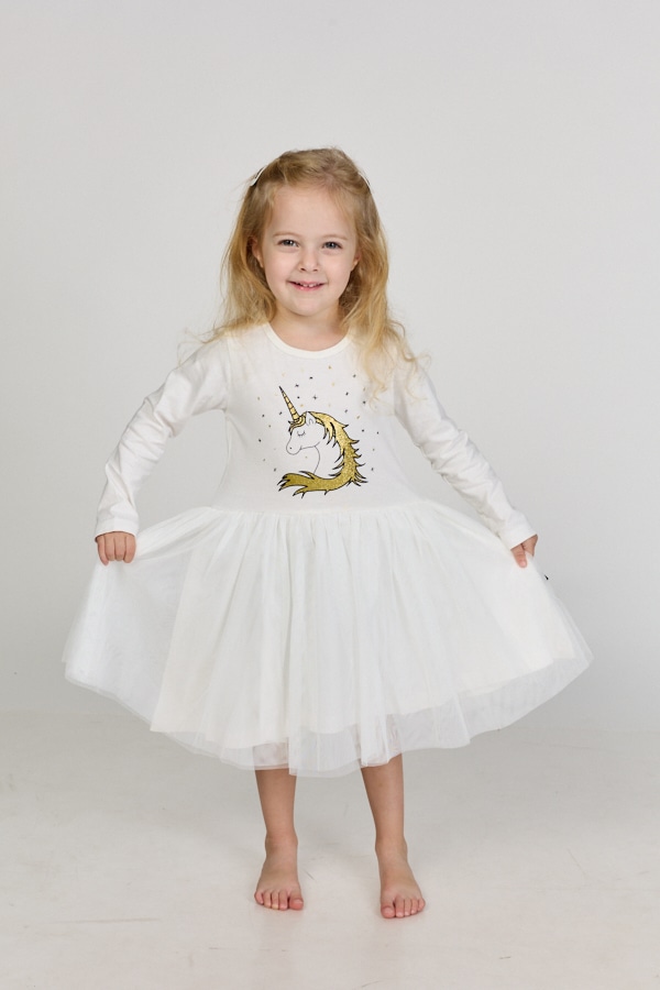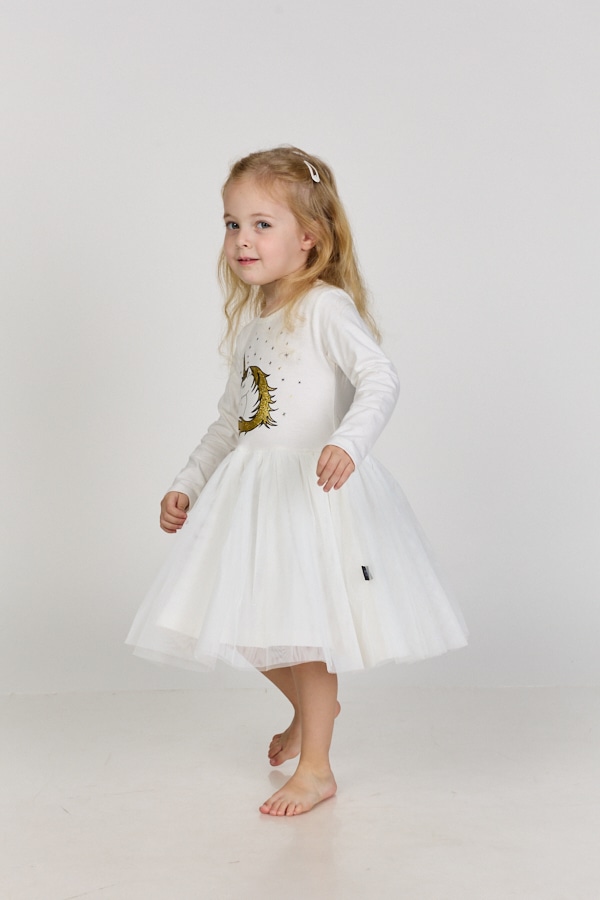 • השמלה עשויה בד רך ונעים 100% כותנה, עם שכבת טול מפנק