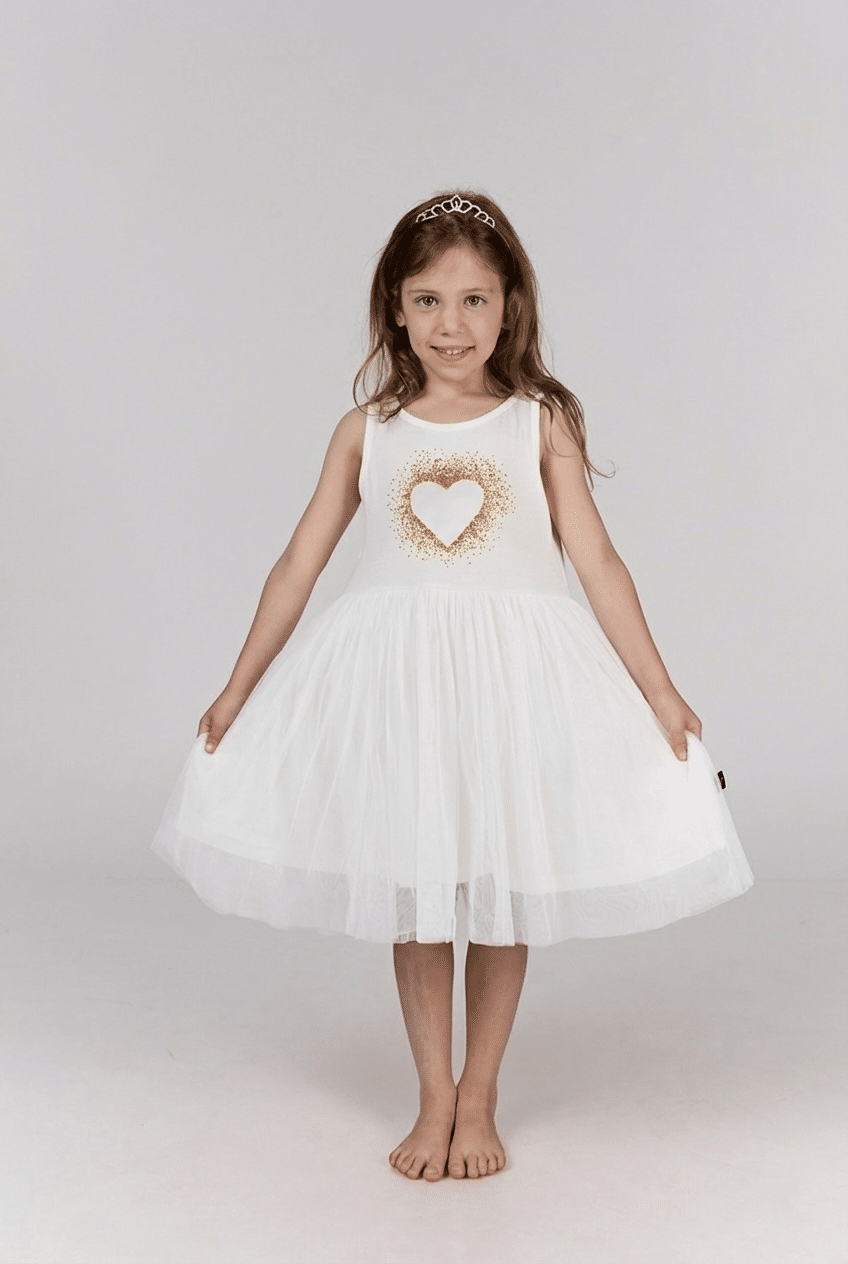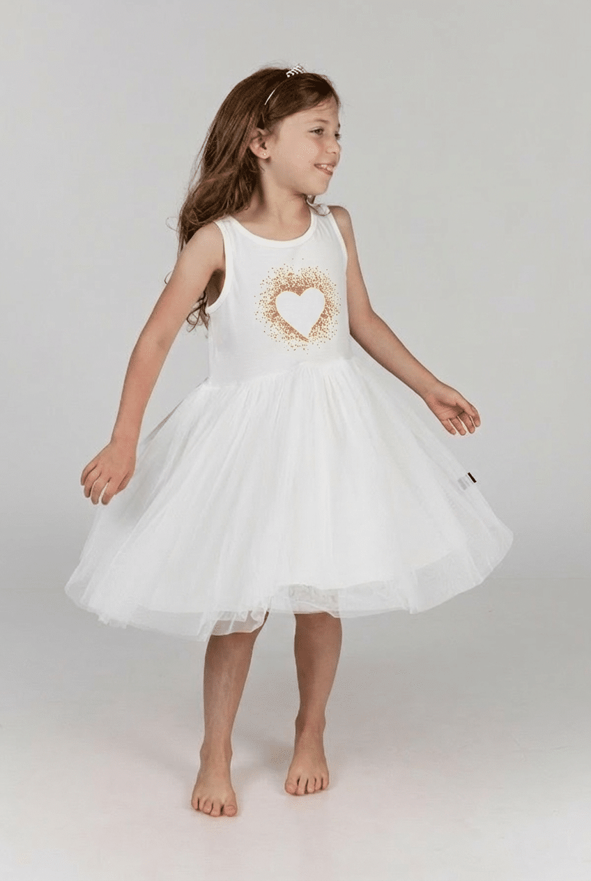 טול מסתובבת סליבלס לבנה עם לב נצנצים