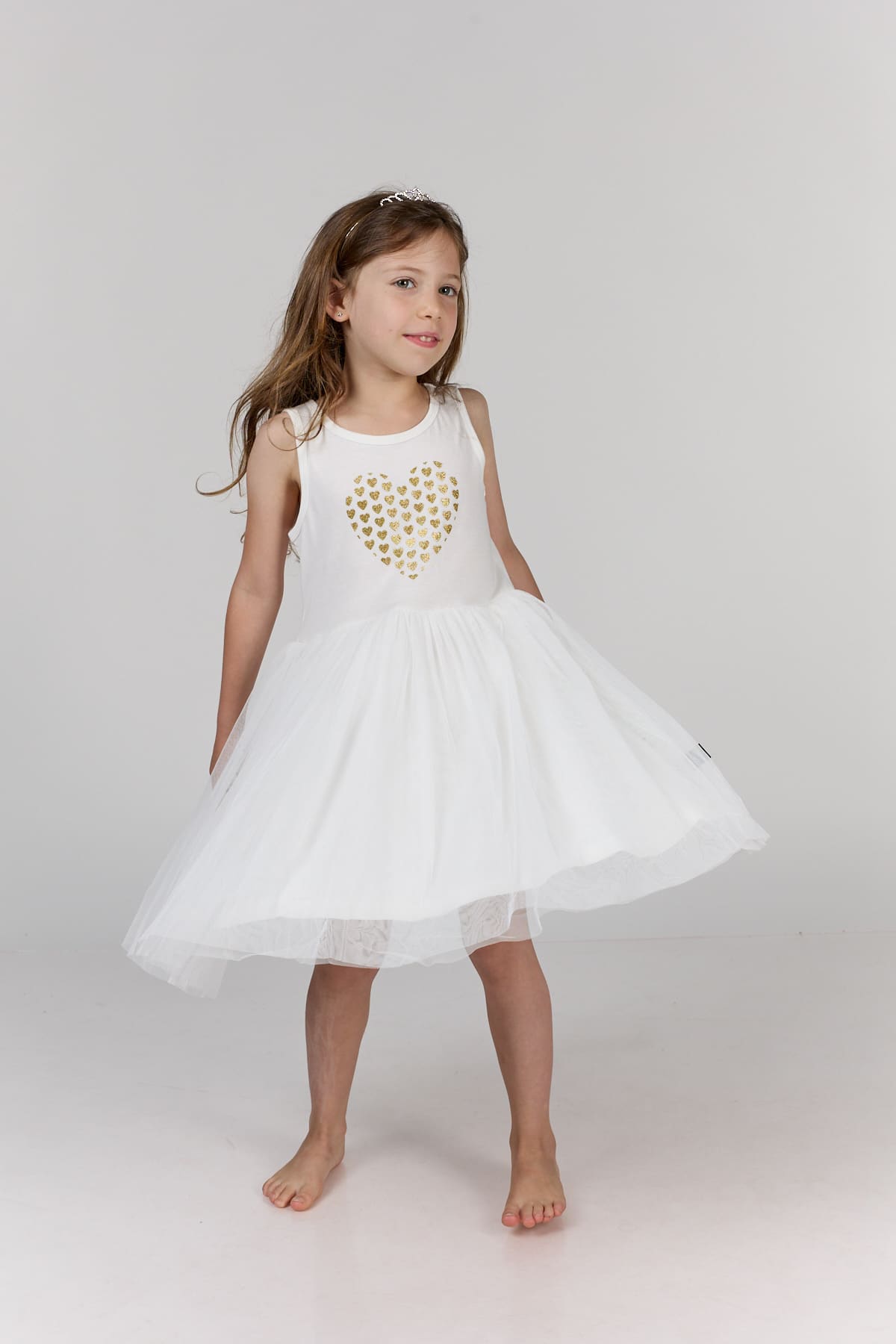 - השמלה עשויה בד רך ונעים 100% כותנה, עם שכבת טול מפנק
