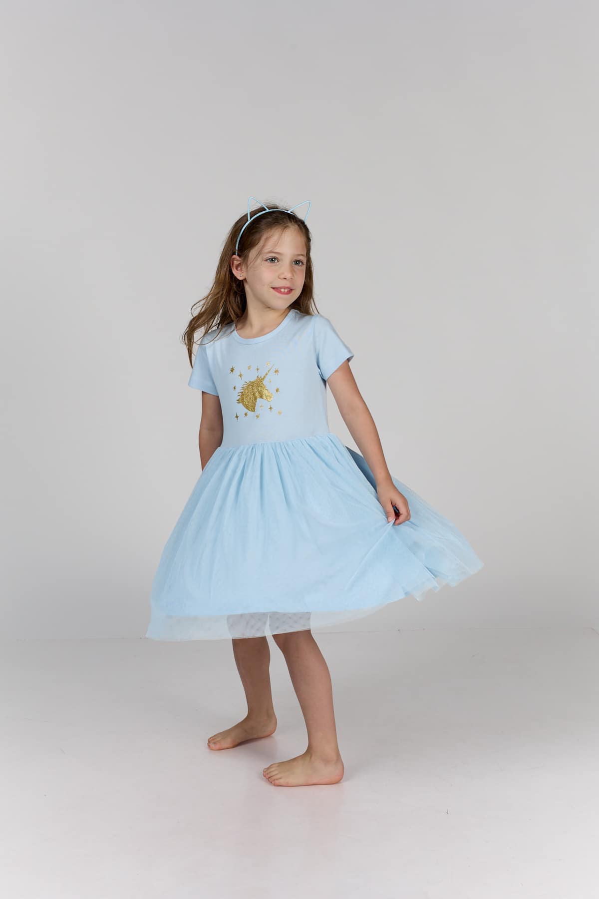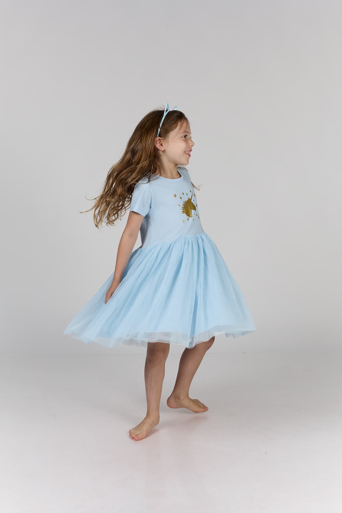 טול מסתובבת תכלת חד קרן וכוכבים